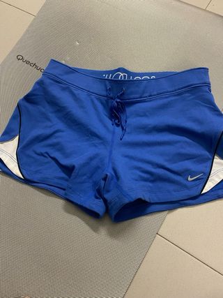 Shorts deportivos Nike de color azul. - Diseño con detalles laterales en blanco y negro. - Cintura elástica con cordón ajustable. - Pequeño logo de Nike en la parte frontal.
