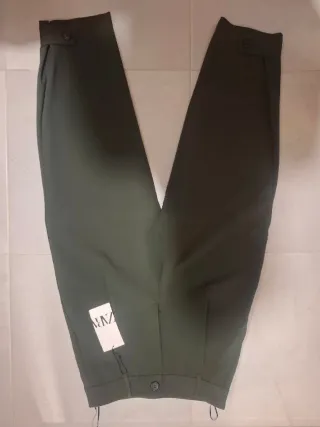 Pantalón de vestir de corte balloon en color verde militar. - Tela de vestir. - Cierre de botón y cremallera. - Bolsillos laterales.