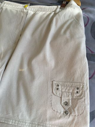 Falda pantalón de color beige. - Talla 6. - Detalle de bolsillo lateral con pespuntes.