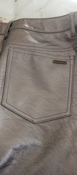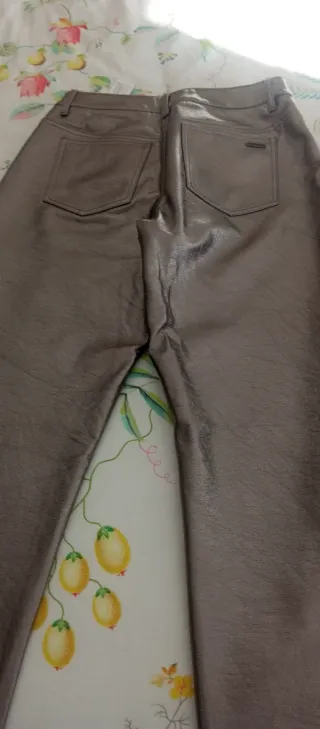 Pantalón de efecto piel en un llamativo color bronce. - Diseño moderno y elegante. - Acabado brillante. Está impecable. Solo 2 ,puestas
