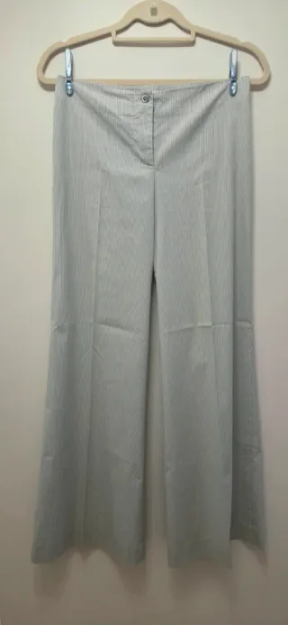 Pantalón de vestir ancho de la marca Paul & Joe de Tela mil rayas gris y blanca que prácticamente no arruga. Pierna ancha. Cierre de botón y cremallera de talle bajo sin cinturilla. Dos bolsillos traseros. En perfecto estado. Se me quedó pequeño rapidísimo. 📏 Talla 34 española (38 italiana) Cintura: 38cm Cadera: 43cm Largura: 100cm 🎨 Gris y Blanco roto 🧵 60% algodón 25% nylon 12% viscosa 3% elastano #gerarddarel #caroll #guess #Sandro #Kooples #nafnaf #tedbaker #vila #claudiepierlot #zadig&voltaire #maxmara #tarajarmon #LiuJo #maje #zapa #repetto #michaelkors #escada #yas #cyrillus #berenice #xandres #sezane #adolfodoming