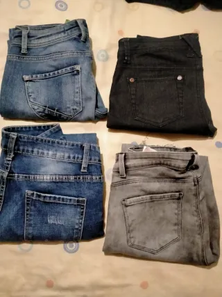 Lote de pantalones vaqueros. - Precio por unidad: 2 €. - Disponibles en varios tonos de azul y gris. - Vaquero azul Springfield - Gris marca Only y negro Fórmula Joven