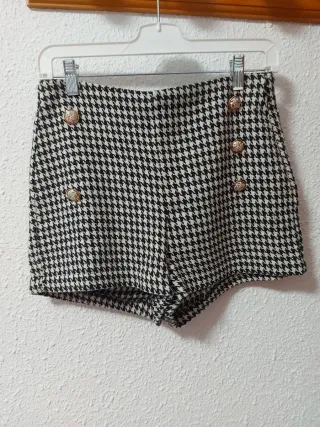 Pantalón corto con un clásico estampado de pata de gallo. Presenta un diseño con botones decorativos en la parte frontal. - Estampado de pata de gallo. - Cierre con botones dorados.