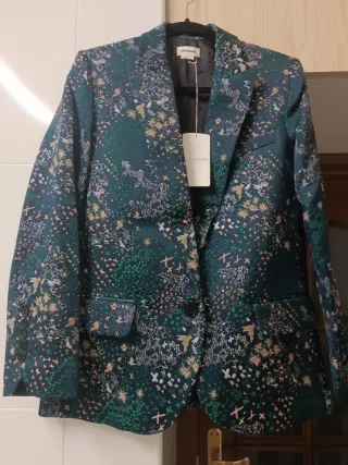 Elegante blazer de Zadig & Voltaire con un estampado vibrante. Pantalón al juego talla 36 disponible. Algodón, poliéster, viscosa - Diseño llamativo con múltiples colores. - Corte clásico de blazer.