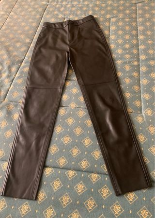 Pantalón de polipiel en color negro. - Diseño liso. - Costuras visibles en los laterales.