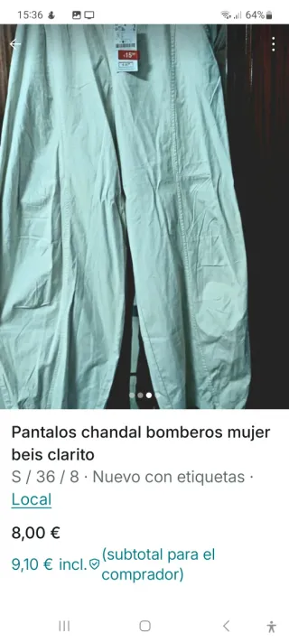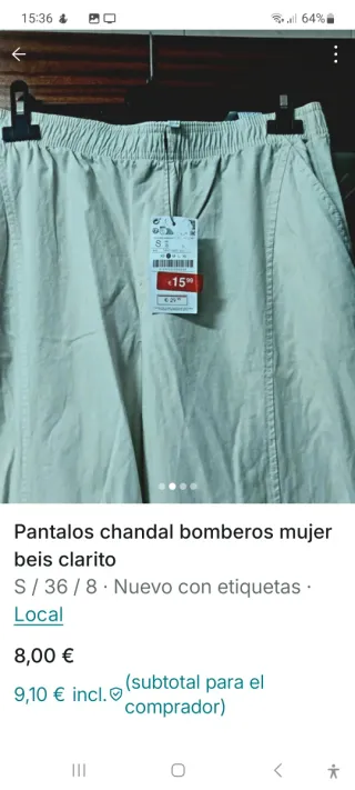 Pantalón chándal bomberos mujer talla S beige