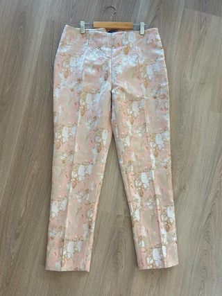 Pantalón de pinzas estampado rosa y dorado