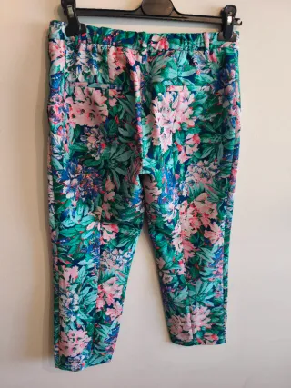 Pantalón corto con un vibrante estampado floral, perfecto para un look veraniego. Pone talla L pero queda bien para una talla M. - Diseño con cintura elástica muy cómoda. - Cierre de cremallera y botón. - Estampado tropical con flores y hojas.