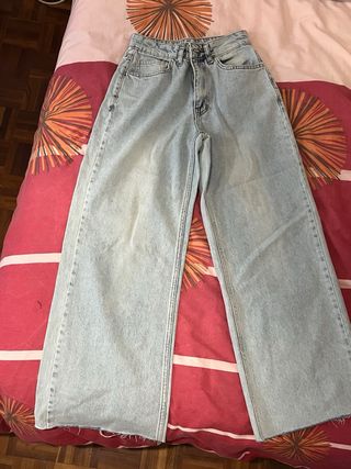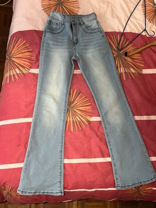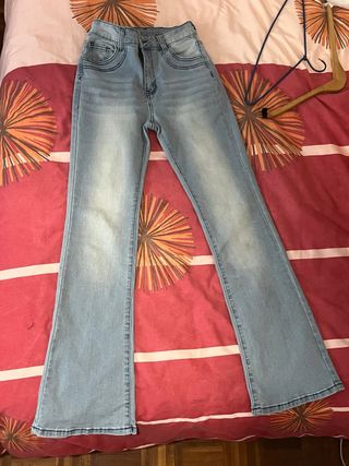 Pantalón vaquero de estilo campana. - Corte acampanado. - Tiro alto. - Lavado claro. Es de shein sin usar