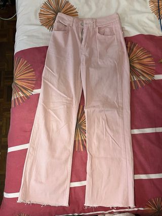 Pantalones vaqueros de corte ancho en color rosa. Tienen un diseño moderno y cómodo. - Cintura alta. - Bolsillos delanteros y traseros. - Bajo deshilachado. (Shein anchos)