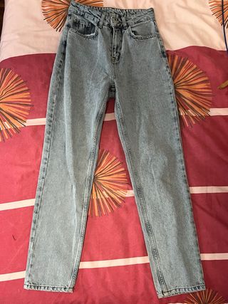 Pantalón vaquero de corte recto. - Cintura alta. - Cierre de botón y cremallera. - Bolsillos delanteros y traseros.