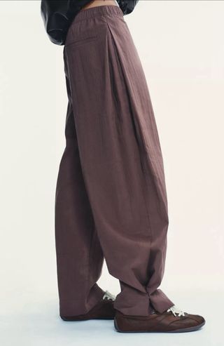 Pantalón de Zara de corte ancho plegado con botón de presión en el bajo, que hace que se pliegue la para en el lateral. Color marrón rosado muy bonito - Tejido ligero, de tacto súper suave