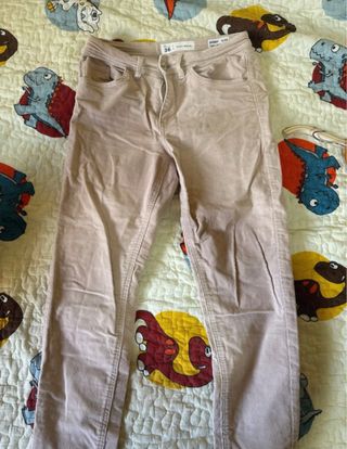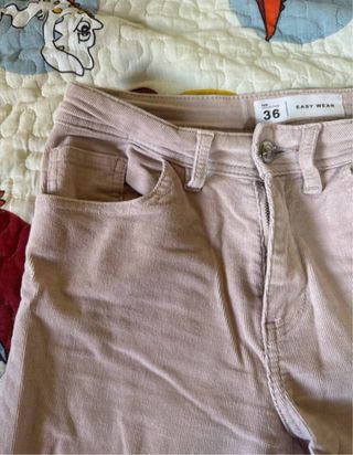 Pantalón de pana en color rosa claro,de la marca Easy Wear. Poco uso. - Corte skinny. - Cierre de cremallera y botón.