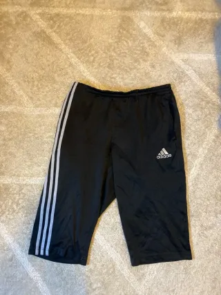 Pantalón deportivo Adidas estilo Capri o pirata. - Diseño clásico con tres rayas laterales. - Logo de Adidas en la parte frontal. - Cintura elástica para mayor comodidad.