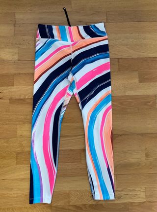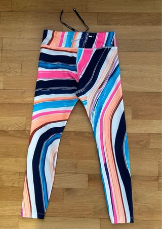 Mallas deportivas Nike con un diseño llamativo. Con pequeño bolsillo en la parte delantera y trasera. - Estampado de rayas multicolor. - Cintura elástica. - Tejido cómodo y flexible. Usado una sola vez