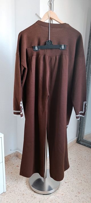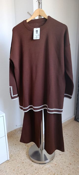 Conjunto jersey + pantalón. Nuevo sin estrenar y con etiqueta. Es de punto gordito. Muy calentito. Super elástico. Talla S. El jersey es oversize, con detalle de botones plateados en las mangas y ribete blanco en los bordes de la prenda. El pantalón con cintura ancha elástica. Color marrón y blanco. #vestido #denim #vaquero #zara #etiqueta #estrenar #fiesta #formal #boda #midi #largo #mini #corto #pantalones #falda #blazer #chaqueta #traje #americana #shein #primark #lefties #zapatos #top #perlas #volantes #strass #brillo #brillante #blusa #encaje #lentejuelas #bolso