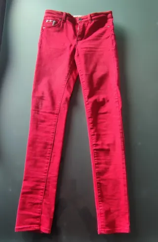 Pantalón de corte recto en color rojo de la marca Morgan. - Diseño de cinco bolsillos. - Cierre de cremallera y botón. - Tejido vaquero.