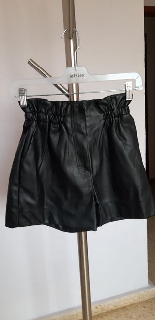 Pantalón corto de cuero. Nuevo sin estrenar y con etiqueta. De tiro alto. Goma en la cintura. Cómodo y elegante. Color negro. De Pimkie. Talla XS/34. #vestido #denim #vaquero #zara #etiqueta #estrenar #fiesta #formal #boda #midi #largo #mini #corto #pantalones #falda #blazer #chaqueta #traje #americana #shein #primark #lefties #zapatos #top #perlas #volantes #strass #brillo #brillante #blusa #lentejuelas #bolso