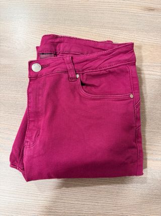 Pantalones vaqueros de corte ajustado para mujer. - Color rosa vibrante. - Diseño de cinco bolsillos. - Cierre de cremallera y botón.
