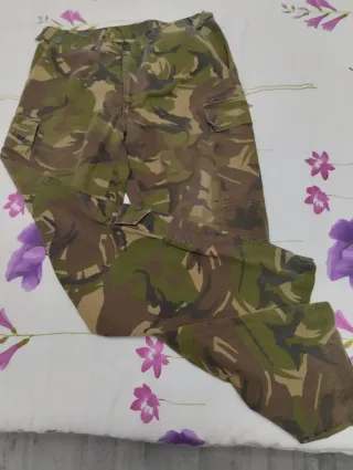 Pantalón de estilo militar con estampado de camuflaje. - Diseño de carga con múltiples bolsillos. - Cintura con trabillas para cinturón.