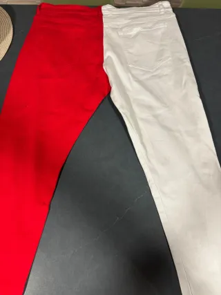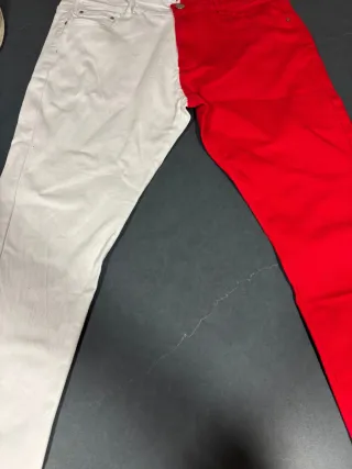 Pantalón de dos colores, blanco y rojo, de la marca Shein. - Diseño bicolor. - Corte moderno. No es elástico y la etiqueta donde ponía la talla la corté porque molestaba, pero es XL. Precio negociable.