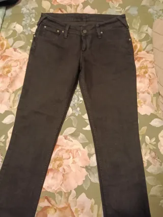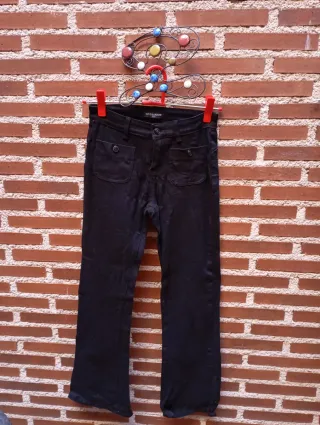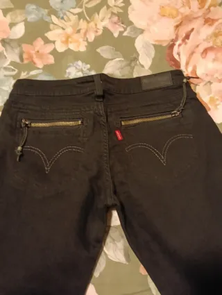 Pantalón ajustado,negro,con cremalleras en la parte de atrás de las piernas, modelo vintage, tiene algún pequeño roce en el bajo y un agujerito en un bolsillo, ni se nota, lo puedes ver en las fotos.VER MEDIDAS EN LAS FOTOS LEVIS Talla 29