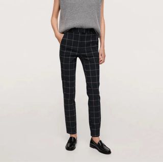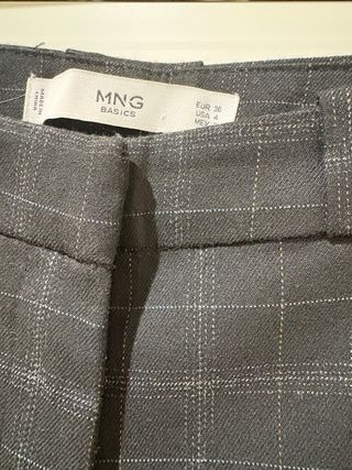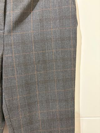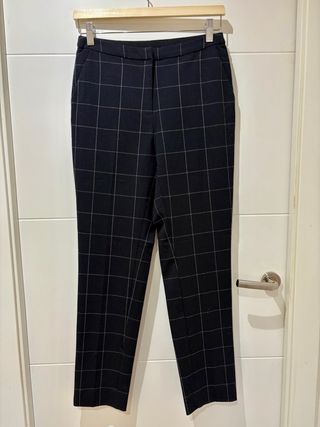 Pantalón de cuadros de tiro medio con cintura elástica en espalda. Bolsillos delanteros y falsos bolsillos de vivo en espalda. Cierre frontal con cremallera, botón interior y gancho, talla S de Zara