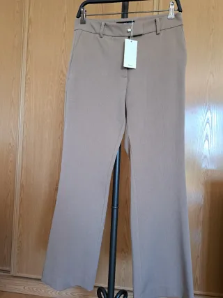 Pantalón de color marrón claro Diseño wideleg. Tiro medio. Dos bolsillos laterales. Cierre oculto de botón, gancho y cremallera. Looks de oficina. Talla 38 de Mango Nuevo a estrenar con etiqueta!