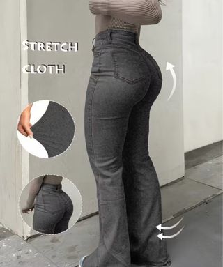 Pantalón de campana con tejido elástico que se adapta a tu figura. - Diseño de tiro alto. - Corte acampanado. - Tejido flexible. Talla XL (44) Sin estrenar.