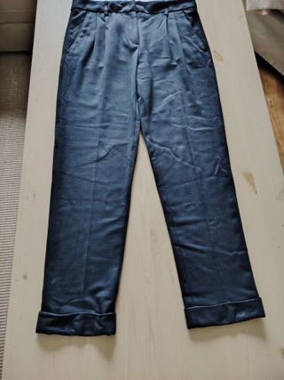 Pantalón azul marino recto de viscosa medidas en las fotos