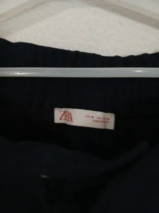Pantalón de vestir azul de Zara para mujer. Diseño elegante y moderno. - Cintura con detalle fruncido. - Cierre con cremallera y botón. - Bolsillos laterales.