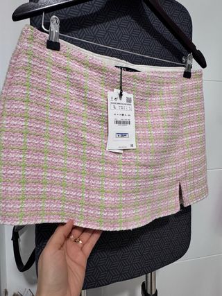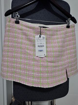 Falda pantalón de Zara con un diseño de cuadros muy alegre. - Tejido texturizado. - Detalle de abertura lateral. - Talla L (equivalente a 40/12).