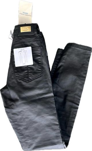 Pantalón de efecto piel de Zara. - Diseño de corte recto. - Cierre con cremallera y botón. - Bolsillos delanteros y traseros.