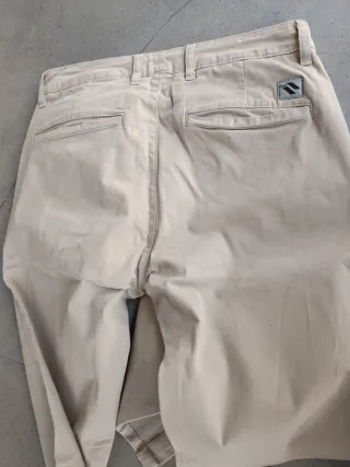 Pantalones largos de color verde oliva. Son elásticos, y tallan grande ( equivale a una 40/42). Se ha. usado una vez, están en perfectas condiciones. - Cintura alta. - Bolsillos delanteros. - Cierre de cremallera y botón.