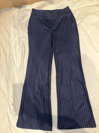 Pantalones de vestir con un diseño de rayas verticales. - Corte acampanado. - Cintura media baja. - Bolsillos laterales.