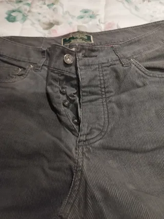 Pantalón de pana fina en color gris. Un básico versátil para tu armario. - Tejido de pana fina. - Cierre de botones.