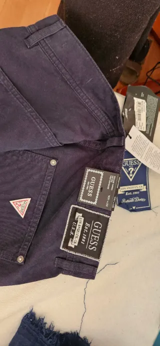 Pantalón de la marca Guess en color azul. ORIGINAL NO NEGOCIABLE - Diseño clásico y versátil. - Tejido resistente y cómodo. - Bolsillos funcionales.