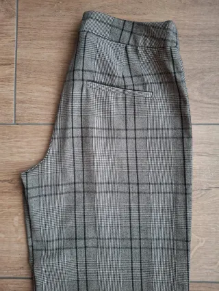 Precio original 79 €. Pantalones corte ancho, con tejido ideal para otoño/invierno. Dependiendo de la altura, pueden ser tobilleros. Largo del pantalón: 96 cm. Están nuevos.Pantalones de corte ancho con un diseño de cuadros. - Detalle de botones a lo largo de los laterales. - Pierna ancha.