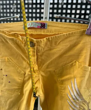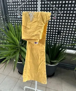 Pantalón campana de color amarillo de la marca OZN en talla 38. En buen estado