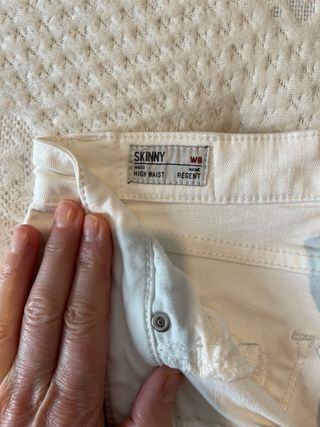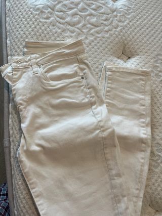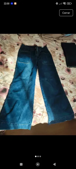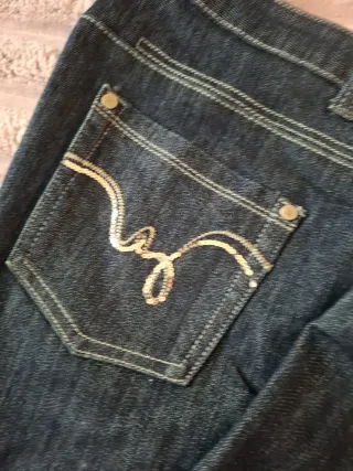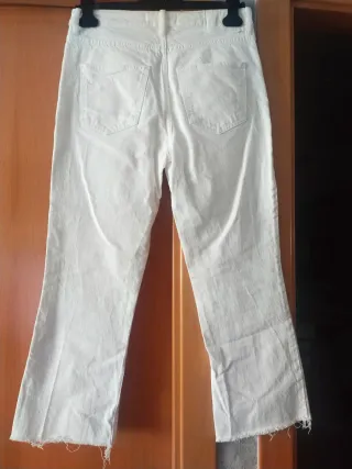 Pantalón vaquero de corte acampanado y tiro alto. - Tejido elástico. - Bajo deshilachado. Marca comp talla 42 pero sirve para tallas 38 - 44