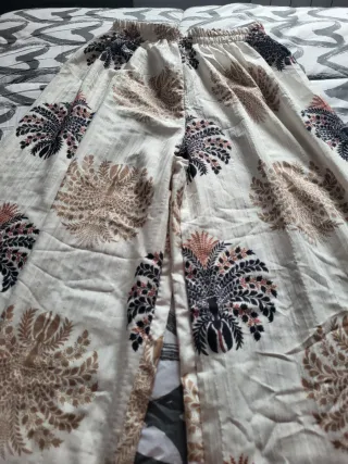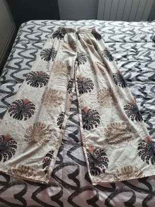 Pantalón largo con un diseño floral llamativo. La cintura es elástica para mayor comodidad. - Estampado floral en tonos beige y multicolor. - Corte ancho y fluido. - Tela caída. - Abarca hasta una T 40/42.