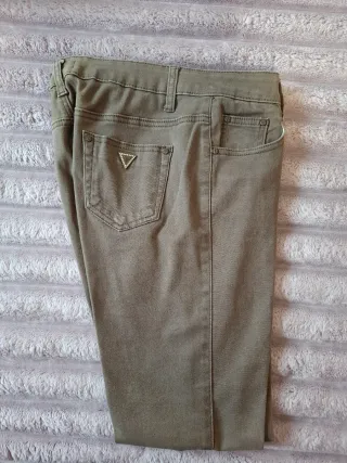 Pantalón vaquero de la marca Guess en color verde oliva. Diseño moderno y cómodo. - Detalle de logo metálico en bolsillo trasero. - Corte recto. Es de una tienda local, no es de marca