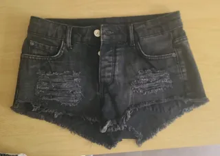 Shorts vaqueros con un estilo desgastado y moderno. - Diseño con rotos y flecos en el bajo. - Cintura con cierre de botones. - Bolsillos delanteros y traseros.