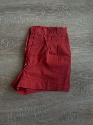 Pantalones cortos de pinzas en color rojo. Tienen un diseño clásico y elegante. - Cintura elástica. - Cierre de cremallera y botón. - Bolsillos laterales.