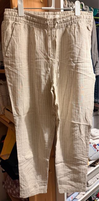 Pantalón de H&M con un diseño de rayas verticales y goma en la cintura. - Tejido ligero y cómodo. - Cintura elástica con cordón ajustable. - Bolsillos laterales.