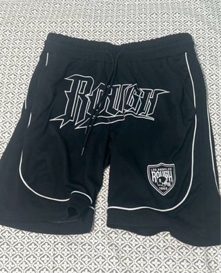 Pantalón corto de la marca ROUGH. - Diseño deportivo. - Detalle de ribete blanco. - Logo de LOS ANGELES ROUGH 1992 en la pierna.