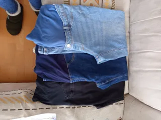 Regalo pantalones. El vaquero es pirata. Lo gris es una falda hasta la rodilla. Lo demas son pantalones largos de tiro bajo. Tallas 38-42