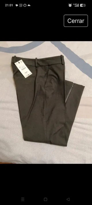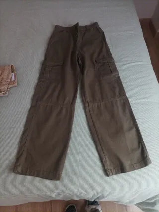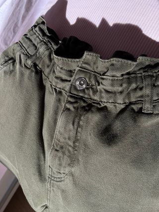 Pantalón de Zara, ideal para el invierno. Su color verde oliva lo hace muy combinable. - Cintura elástica. - Cierre de botón y cremallera. - Bolsillos delanteros. - Detalle metálico en bolsillo. Lo vendo porque la forma no es mi estilo. Está nuevo.