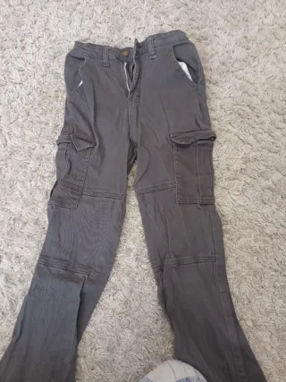 Pantalones de estilo cargo en color gris. Cuentan con múltiples bolsillos para mayor funcionalidad. - Cierre de cremallera y botón. - Bolsillos laterales. - Bolsillos cargo en los muslos. - Diseño con costuras reforzadas.