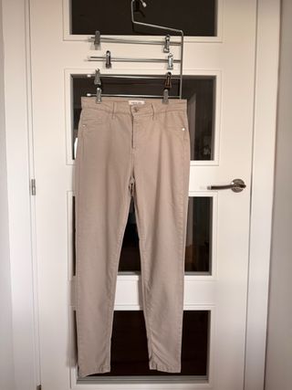 Pantalones pitillo de color beige de buena marca y tejido. - Corte ajustado. - Cintura alta. - Ajustables y comodos - Muy suaves al tacto
